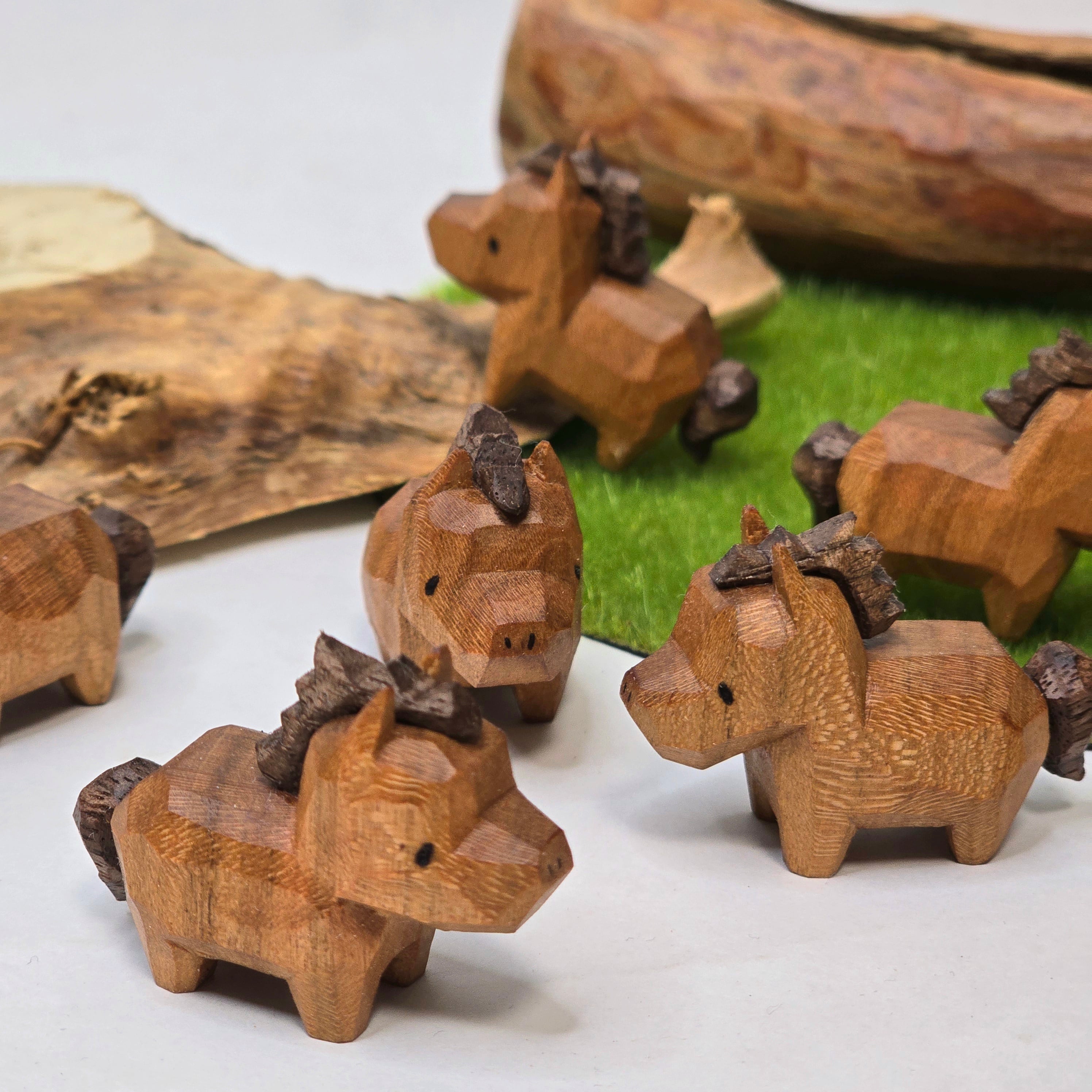彫刻刀で1頭ずつ手彫りしているので