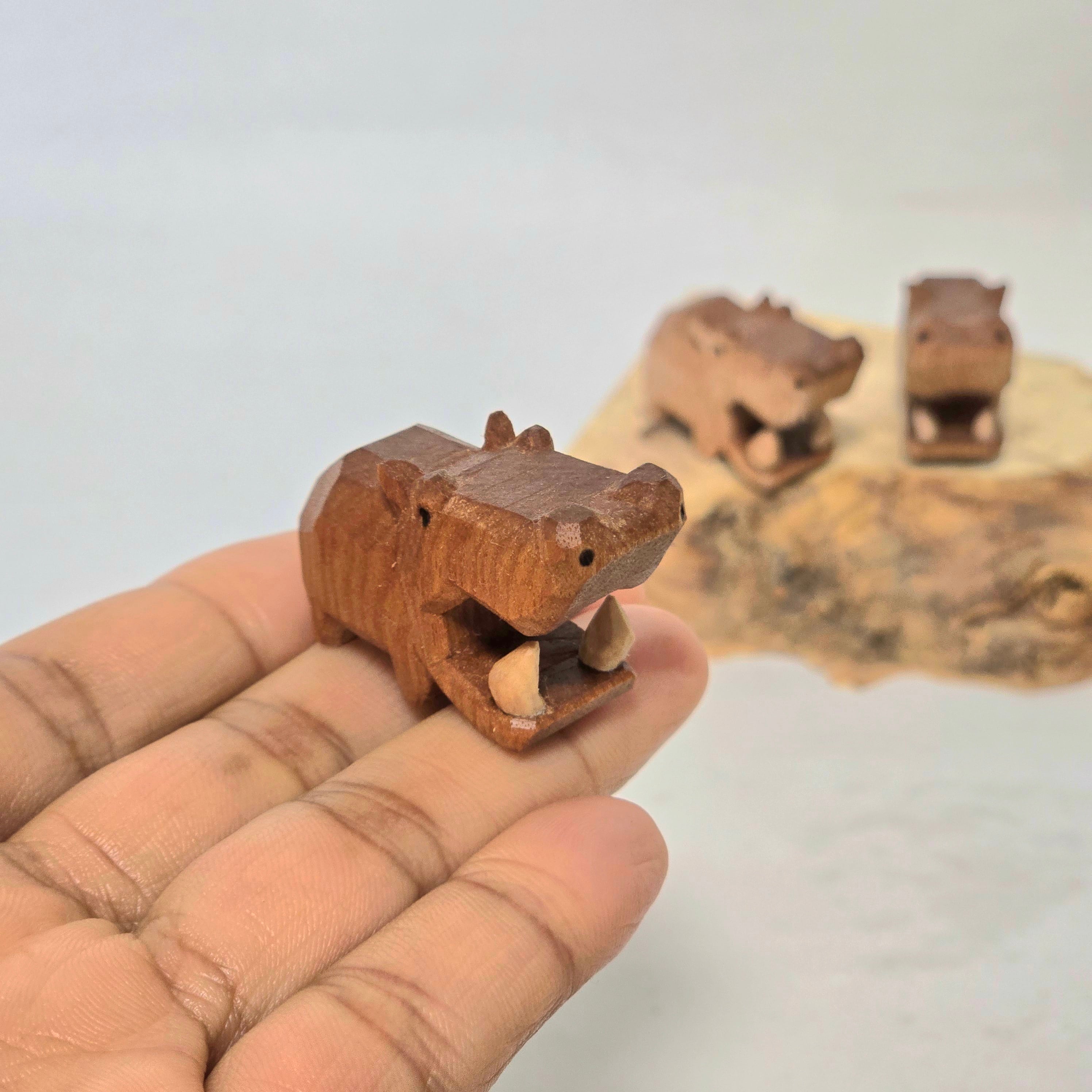 手乗りサイズの木彫りのカバです!